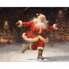 Vintage Santa Claus on A Swing Poster Reindeer Prints Canvas Printing Christmas Holiday Wall Art Picture for Home Decor Gifts