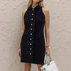Damen Elegant Einreihiges Kleid Damen Slim Einfarbig Ärmellos Umlegekragen Mini Kleider Weiblich Sommer Mode Damenkleid
