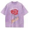 Romantisches Damen-T-Shirt mit Rosenmuster Gewaschen Modisch Kurzärmlig Statement-Merkmale Übergroßes Basic-T-Shirt