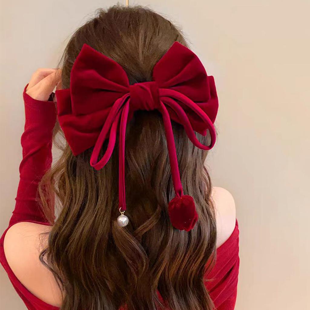 1:Superniedliche Haarschleifen – 1 rote Samthaarschleife, passend zu jedem Outfit. Handgefertigte Haarschleifen für kleine Mädchen, geeignet für alle Jahreszeiten.
