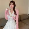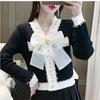 Frühling Herbst Damen Langarm V-Ausschnitt Luxus Diamant Perlen Schleife Strickpullover Einreihige Strickjacken Tops