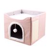 Katzenbett Katzenwürfel Höhle mit flauschigem Ball & Kratzbrett Haustier Spielhaus Großes Kätzchen Schlafbett Bequem für Wohnungskatzen