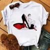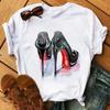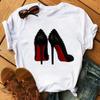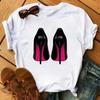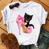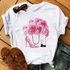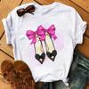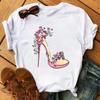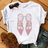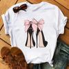 Maycaur Pinke High Heels Blumen Taschendruck T-Shirt Damen Trendy Hipster Harajuk Kawaii Kurzarm Oberteile T-Shirt Femme Kleidung Unisex