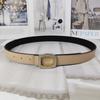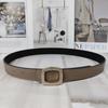 New Color Lychee Pattern Cowhide Belt Women'S Square Diamond-Encrusted Smooth Buckle Simple Jeans Belt