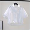 Damen Sommer Kurzarm Lässig High Street Hemd Einfarbig Schlichte Baumwoll-Tops