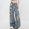 Stilvolle amerikanisch inspirierte Jeans für Damen im Sommer: Dünn Vintage - Bedruckt Zerrissen Weitbeinig Bodenlang Locker sitzend und Schlankmachend