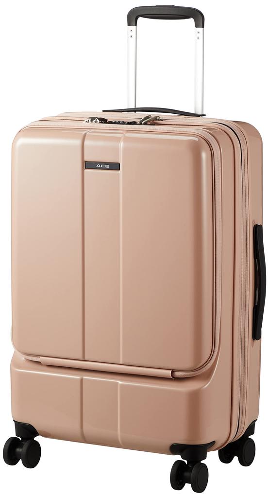 Suitcase Folds 4kg 57L Expandable function Caster stopper Front pocket inch PC storage 63 cm Pink beige One size [ACE] No.06906 (when expanded) 15.6