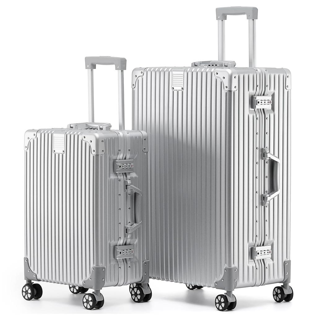 Koffer, Handgepäck, Aluminiumrahmentyp, großer Tragekoffer, ultraleicht, großes Fassungsvermögen, Tragetasche, silberfarben, stoßfest, TSA-Diamantschloss, Retro, 360-Grad-Drehung, leise, Doppelrollen, Reisen, Geschäftsreise