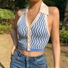 Frühling und Sommer Neues gemustertes Neckholder-Top Rückenfreier Cardigan Gestricktes Neckholder-Top