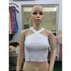 Überkreuzter Strick-Haltertop Rückenfrei Eng Schlankmachend Bandage und Brustbandage