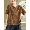 Large Size Women's New Style Literary Short-sleeved T-shirt Retro Printed Loose Casual Slim Pullover Top for Women