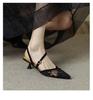 Netztasche Kopf Sandalen hohl Stiletto Sommer Damenschuhe neu hinten leer Stiletto Schuhe hohe Absätze spitze Sandalen