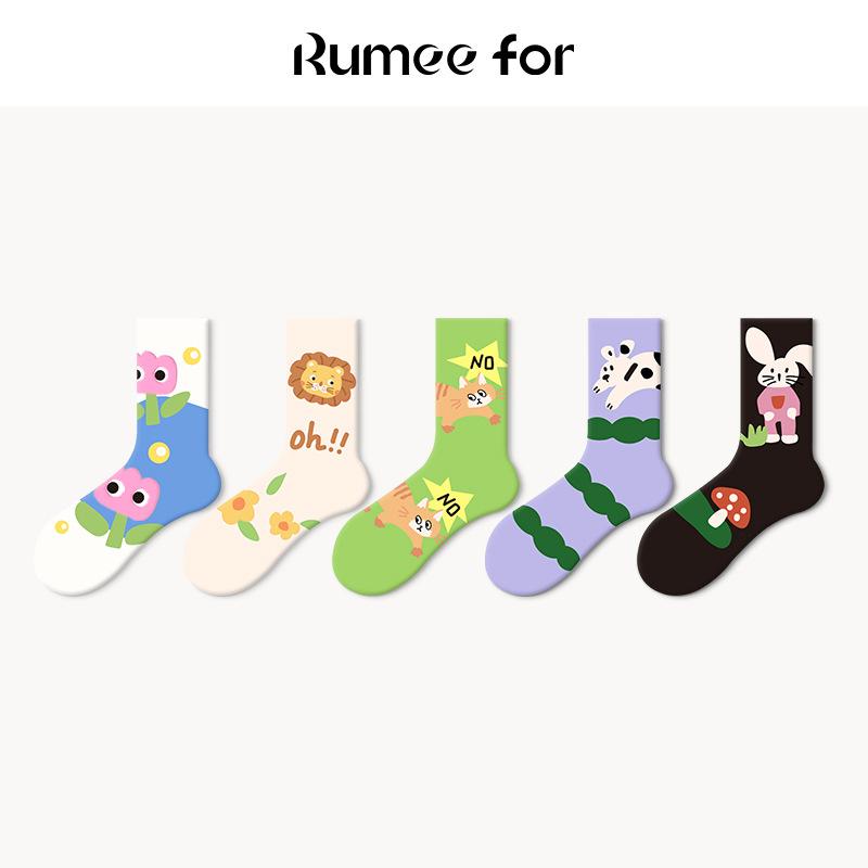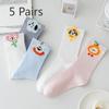 5 Pairs of Female Spring and Summer Trend Cartoon Tube Socks