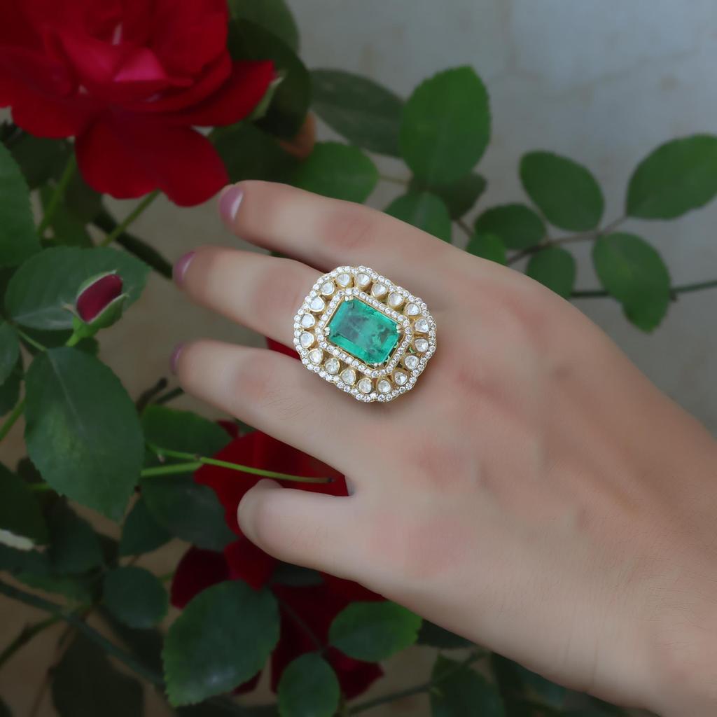 925 Sterling Silver Handmade Jewelry, Gold Finish Kundan Ring, Indian jewelry, Statement Women ring Polki Ring, Moissanite Adjustable Ring