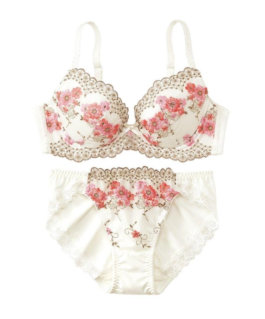 Inneres Set Blumen-BH und Shorts Set Bouquet [Nissen] Damen (Blumenmuster) (Triumph) Off-White E75/L