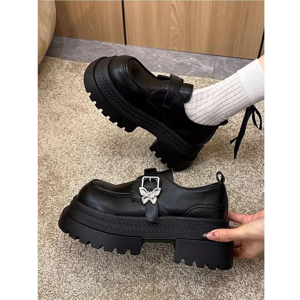 Schwarze Loafer mit dickem Absatz, vielseitige Schuhe mit runder Spitze und Plateausohle, Einzelne Schuhe im britischen Stil, kleine Lederschuhe für Damen, 2025 Frühjahr und Herbst neu m