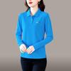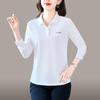 Langarm-T-Shirt für Damen Dünner Stil Mutter Herbst Eis Seide Oberteil Mittelalterliche Frauen Revers T-Shirt Poloshirt