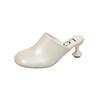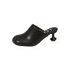 Europe, America 2025 summer and autumn shallow mouth round head middle heel temperament single shoes women wear fashion Muller half drag bag head sand