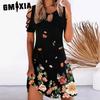 GMXIA 13 Farben Damen Kleid mit Blumenmuster Sommer Sexy Kurzarm O-Ausschnitt Mini Kleider Weiblich Vintage Elegantes Kleid