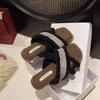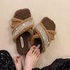 Internet-Berühmtheit flauschige Hausschuhe Damen tragen 2024 Herbst und Winter neu Strass flacher Boden Ein-Wort kleiner duftender Plüschhausschuhe
