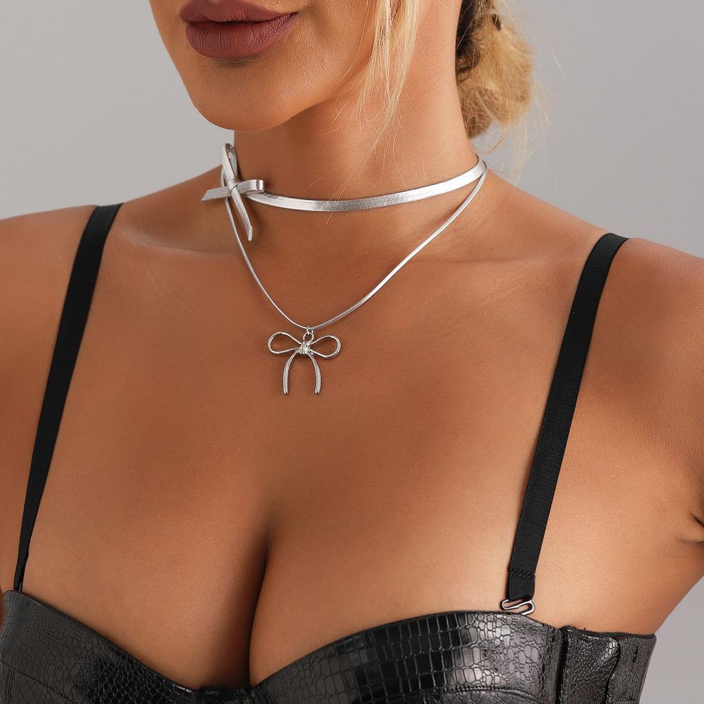 Accessories Double Leather Bow Pendant Necklace Female Sweet Cool Spice Premium Clavicle Chain