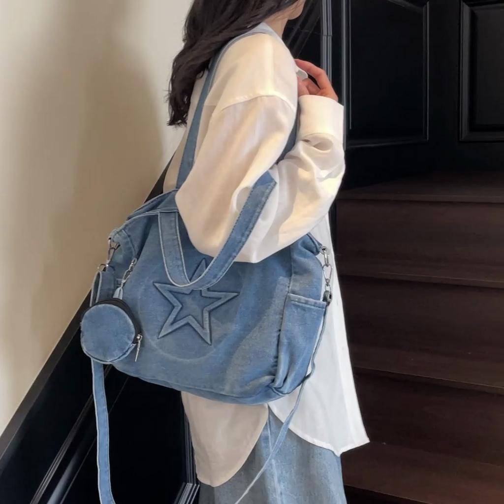Jeanstasche Damen Große Kapazität Umhängetasche Fünfzackiger Stern Klasse Tragetasche