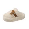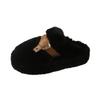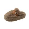 Flauschige Hausschuhe mit dicker Sohle für Damen zum Tragen 2024 neuer Zehenbereich, Samt zum Warmhalten, niedliche Windgürtelschnalle, Baumwollhausschuhe für zu Hause