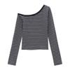 Schräger Ausschnitt, Off-Shoulder Gestreiftes Langarm-T-Shirt für Damen Im Frühherbst, Neues Slim-Fit und Kurzes Oberteil