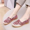 2025 Frühling und Sommer alte Peking Stoffschuhe Damen flache Absätze, ethnischer Stil, flacher Ausschnitt, Mittelalter und ältere Menschen mit einem Fuß, fauler Mot