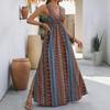 Women Bohemian Holiday Style Retro Printed Summer Strap Backless Bandage Big Hem One Piece Dress
