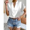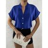JKASHDK Damenmode Lässig Sommer Frühling Einfarbig Druck Kurzarm V-Ausschnitt Blusen & Hemden
