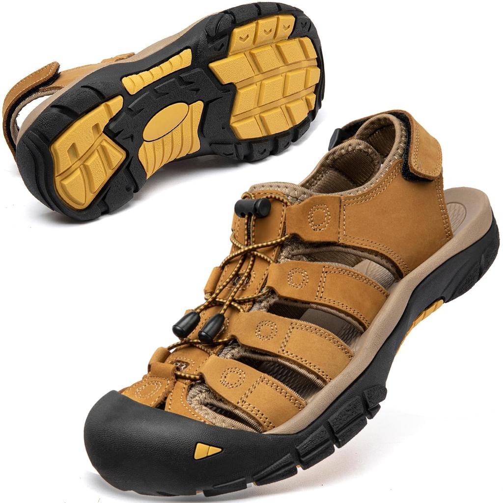 [Ledersandalen sind bei erwachsenen Männern beliebt] Herren-Sportsandalen mit echtem Leder als Hauptmaterial für die Riemen haben eine solide Präsenz! Wir wählen sorgfältig hochwertiges Rindsleder aus, und das Leder ist weich und hat eine gute Textur, und gleichzeitig ist es hoch atmungsaktiv, sodass Sie sich auch bei längerem Gehen nicht stickig fühlen.. Bitte genießen Sie diese Vorteile, die einzigartig für echtes Leder sind.