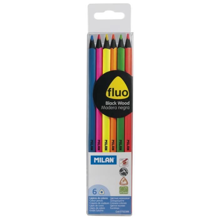 Crayons de couleur - fluo - triangulaires - bois de tilleul - 6 pièces - mine 2.9 mm ø