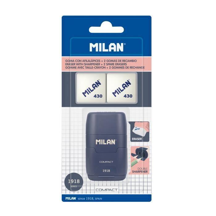 Taille-crayons-gomme - milan - compact série 1918 - couleur bleu - inclus 2 gommes de recharge