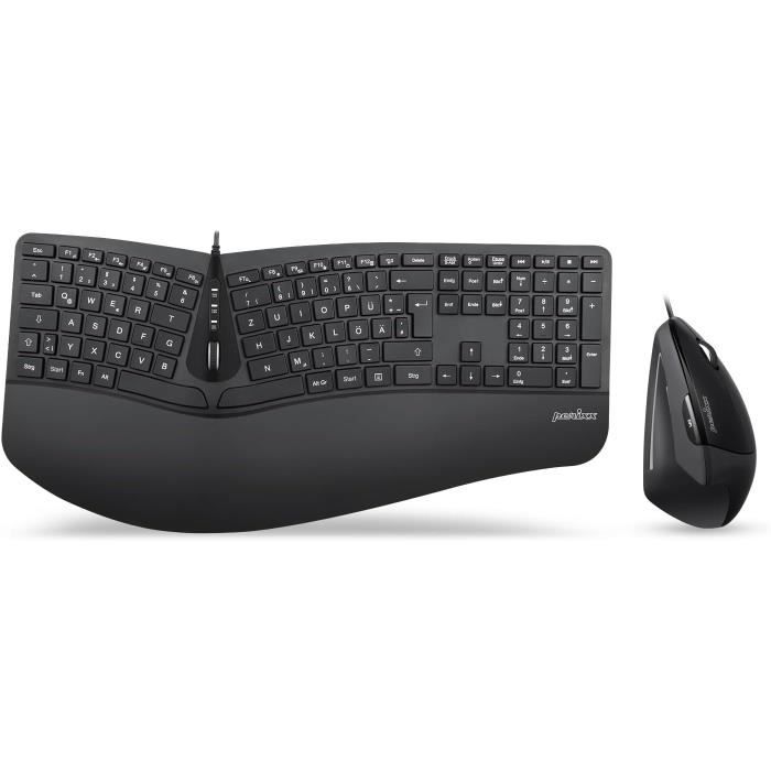 Kit combiné ergonomique - perixx - periduo-505 - clavier incurvé - souris verticale - repose-poignet réglable
