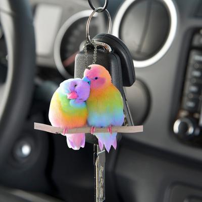Vogel-Anhänger für Pärchen, Schlüsselanhänger, bunt, Turteltauben, Anhänger zum Aufhängen am Auto, einfach aufzuhängender Anhänger für Auto, Rucksack, Schlüssel