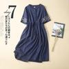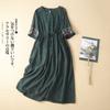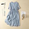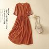 Baumwoll-Leinen-Stickkleid Damen Sommer 2025 Lang Locker Gas spitzenkragen Kurzarm Knielang Rock