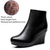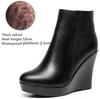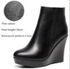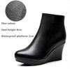 Damen Plateau Keilabsatz Stiefel Herbst Winter Schwarz Stiefeletten Für Frauen Hohe Absätze Damen Echtes Leder Schuhe Zippe
