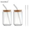 1/2/4 Stück Glasbecher mit Bambusdeckel und Strohhalmen 17oz Dosenförmige Trinkgläser Biergläser Eiskaffeebecher Ideal für Bubble Tea Saft