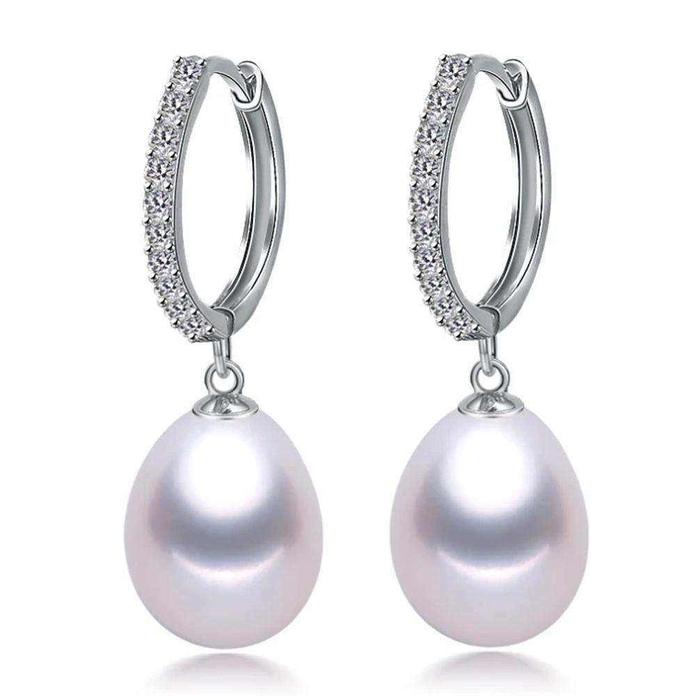 Hochwertige weiße Perlenohrringe für Damen, niedliche Mode Mädchen bestes Geschenk echte 925 Silber schwarze Süßwasserperlen Ohrringe Schmuck