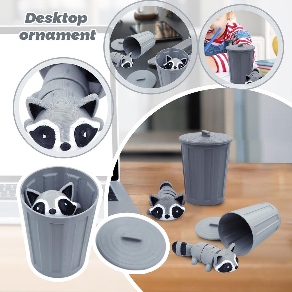 3D-gedruckte Waschbär-Figur, Bewegliche Gelenke, 3,19 Zoll lang, Grau und Schwarz, Mit Aufbewahrungsbehälter