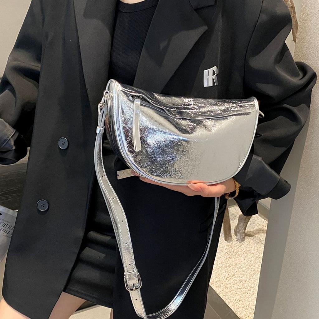 - Diese Handtaschen haben eine trendige und elegante halbmondförmige Silhouette.. Gefertigt aus genarbtem gewachstem Rindsleder, weisen sie ein einzigartiges glänzendes Finish auf, das ihnen einen modernen und stilvollen Look verleiht.. Die glatten Linien und das minimalistische Design, zusammen mit dem metallischen Reißverschluss und den Beschlägen, unterstreichen ihre modische Ausstrahlung.