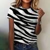Damen T-Shirt Rundhals Kurzarm Sommer Mode Top Gestreifter Druck Kurzarm Locker Lässige Kleidung Damen T-Shirt