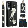 SY-001 Für Samsung Galaxy S25 Edge Hülle Kartenfächer Lederbeschichtet TPU Blume Handyhülle