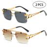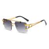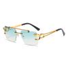 Fashion Rimless Square Double Bridge Sun Glasses Vintage Women Men Sunglasses UV400