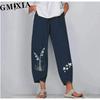 GMXIA 4 Farben Damenmode Lässig Baumwolle Leinen Übergröße Lange Hose Einfarbig Weites Bein Haremshose Locker Einfarbig Hose