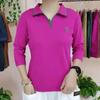 Unterteil für Damen mit großer Größe, lockeres Herbst-Langarm-T-Shirt für Damen mit besticktem POLO-Kragen, Shirt für Mütter mittleren Alters