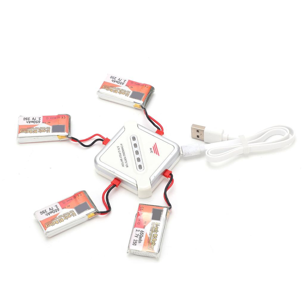 4pcs 3.7V 650mAh Rechargeable Lipo Battery Pack with JST Plug and 4?in?1 Charger for RC Cars