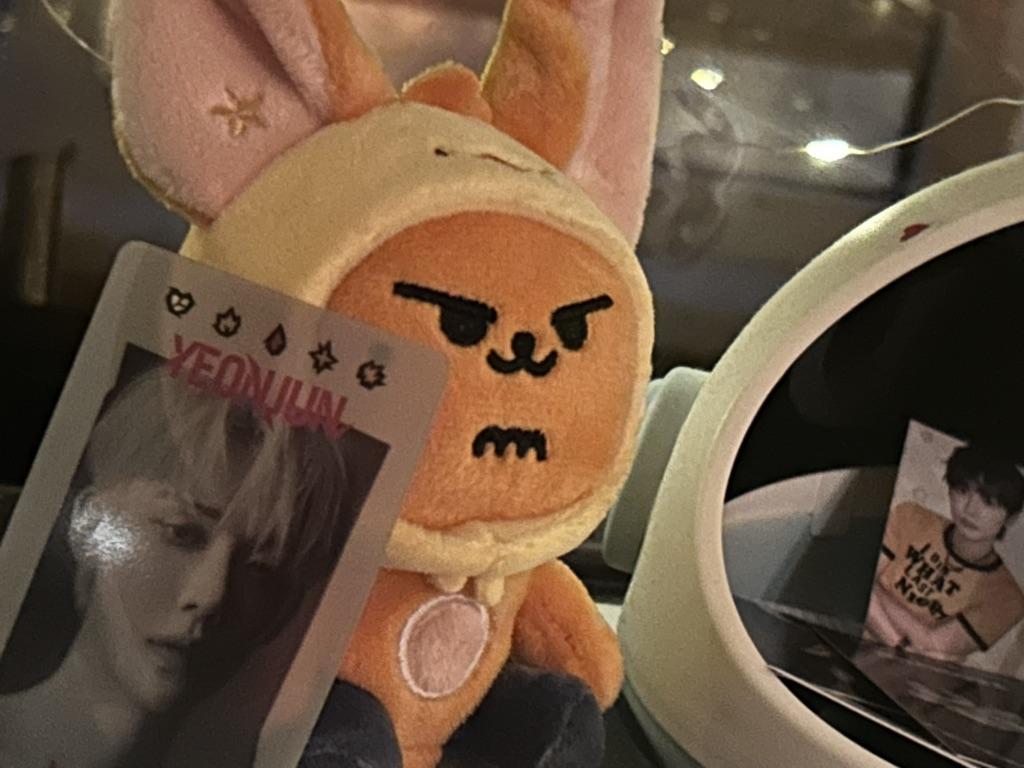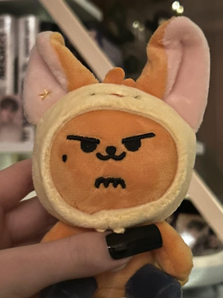 Super süß und hochwertig. Hat überhaupt keinen Geruch. Ehrlich gesagt, ich dachte, es wäre etwas größer, als es sich herausstellte, aber ich glaube, das liegt einfach daran, wie es auf dem Foto aussieht.. Es ist sehr gut vernäht, behält seine ursprüngliche Form, und der Kopf ist ziemlich fest, denke ich (insbesondere die Füllung selbst). Es ist weich und doch moderat fest. Im Boden befindet sich ein kleiner, runder, flacher Magnet. Der Stern hat ebenfalls einen, sodass Sie den Stern jederzeit abnehmen und ohne ihn tragen können. Und der Stern war ursprünglich getrennt vom Spielzeug, als ich es auspackte.. Länge ohne Ohren beträgt ca. 12 cm, mit ca. 17 cm. Auf dem Etikett steht, dass es in keiner Weise gewaschen werden kann.. Ich habe es am 7. (Samstag) bestellt, es wurde am 11. aus dem Lager abgeholt und kam am 23. an. Es verließ Korea am 13. Die Lieferung zur Grenze ist schnell, und dann hängt es von Ihrem Land ab.. Zusätzlich enthielt der Hwangchoon eine durchscheinende Plastik-Lomo-Karte mit Yeonjun aus der „Tomorrow“-Ära. Ich denke, das ist ein Bonus/Geschenk vom Verkäufer. Vielleicht hast du etwas Ähnliches. Der einzige Nachteil ist vielleicht, dass der Stern leicht mit etwas verschmiert ist (vielleicht ein Stift?), aber ich denke, das ist rein individuell, also ist es nicht kritisch. ❤️ Und nur für den Fall, dass dieses Produkt für Personen ab 14 Jahren bestimmt ist.