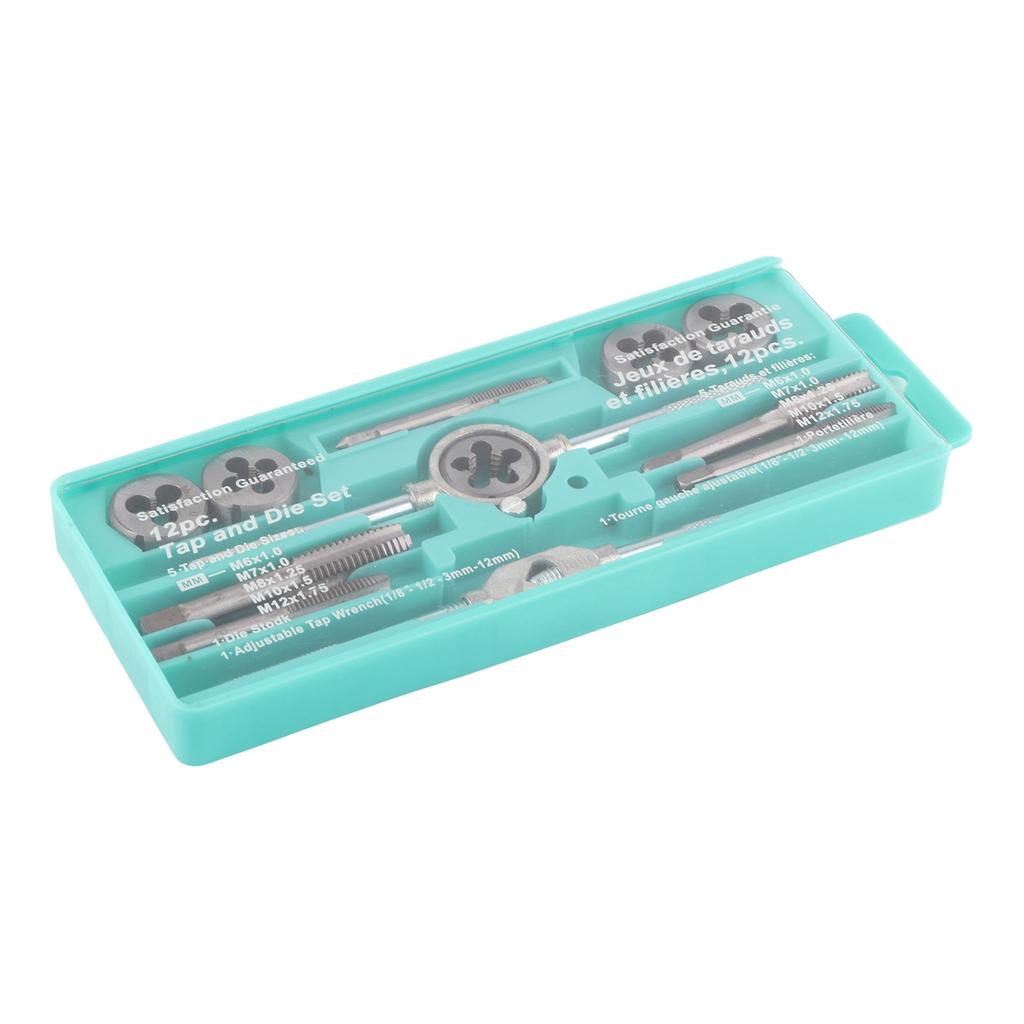 12-teiliges Gewindebohrer-Ausdreher-Set Hochgeschwindigkeitsstahl Verschleißfest Multifunktionales Gewindebohrer-Schneideisen-Set für die Wartung